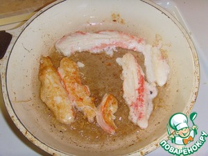 • Яичный белок солим, перчим по вкусу, слегка взбиваем. Вымачиваем в нем крабовое мясо 15 минут.