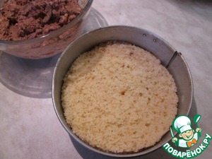 Собираем торт. На дно формы (20 см.) выкладываем нижний корж.