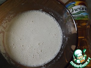 Влить в тесто подсолнечное масло и хорошо перемешать.
