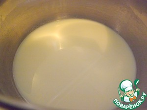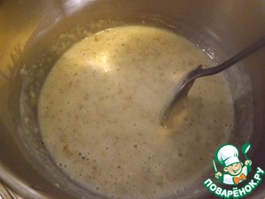 Для приготовления крема взбить молоко, сахар и муку. Нагреть до загустения, постоянно мешая.