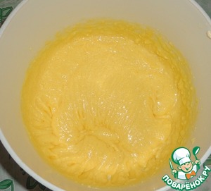 Взбить желтки с сахаром, с добавлением ванильного сахара.