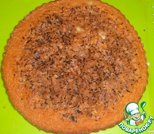 Светлый бисквитный корж, испеченный с тертыми шоколадными конфетами. Конфетная крошка интересно запекается, образуя сладкую и рассыпчатую крошку сверху торта. Угощайтесь!
