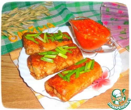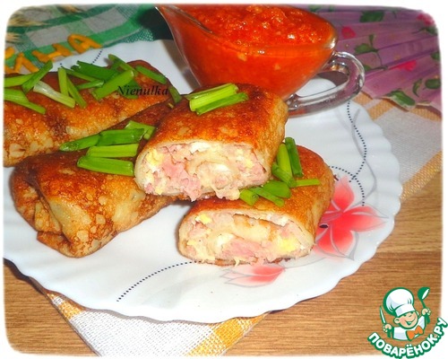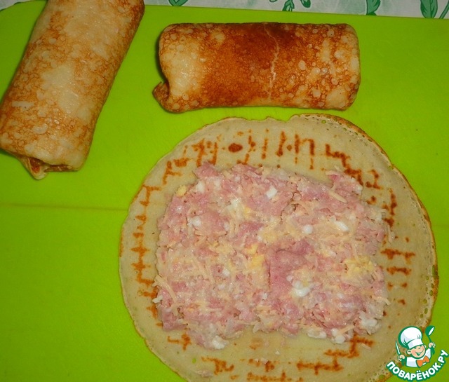 Сытные блинчики с начинкой из риса, ветчины, сыра и не только. Прекрасно дополняет блинчики с начинкой румяная корочка.