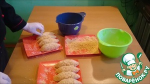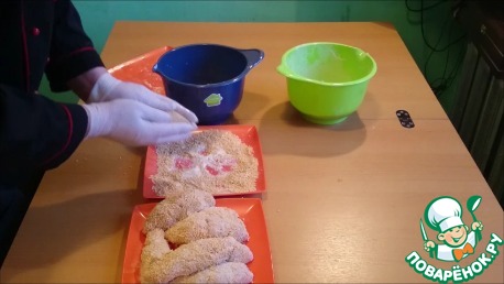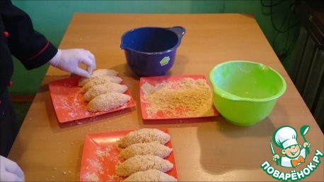 Через 15 минут панируем второй слой панировки (очерёдность: льезон, сухари)