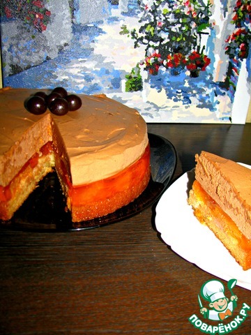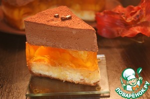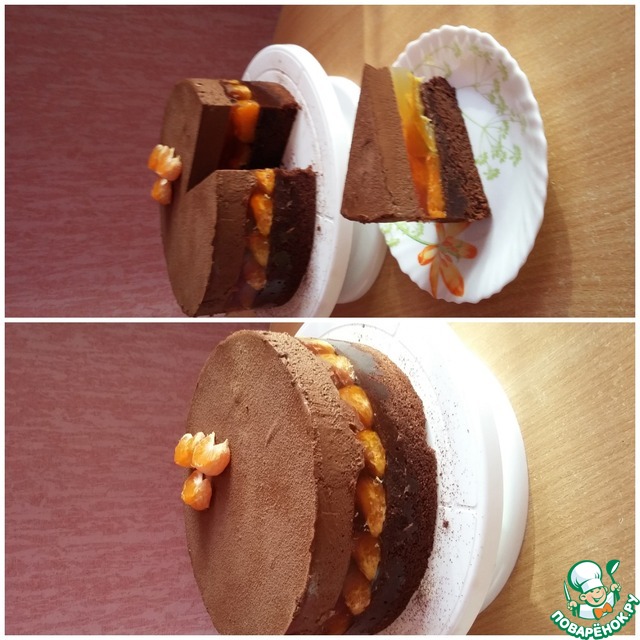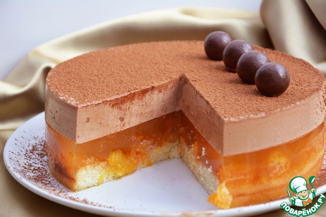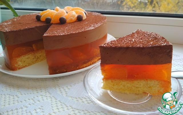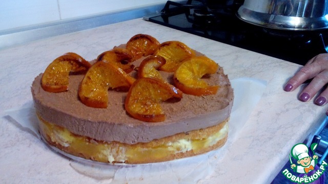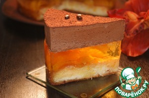 Нежный бисквит, апельсиновая прослойка-желе и нежный шоколадный мусс. Изысканный и очень нежный торт, который украсит ваш праздничный стол!