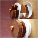 Во-вторых в верхний слой (шоколадный мусс) я добавила соответственно рецепту 200 гр. горького шоколада, брала 72%. Слой получился горький, очень на любителя, многие гости его сняли и не стали есть. По мне, всё же нужно добавить сахарную пудру, но это дело вкуса.
