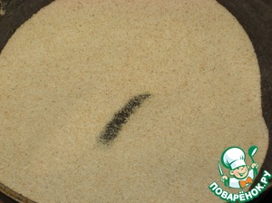Нагреваем казан, насыпаем манку, делаем борозду