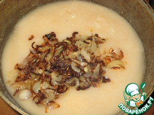 Эту кашу мы готовим по выходным, она очень сытная и оторваться от нее невозможно. Пол дня сытости обеспечено)) По консистенции должна быть жидкая.