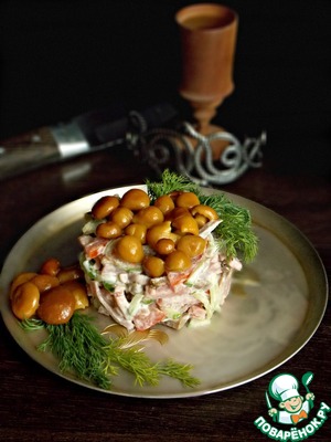 В начале марта в нашей семье празднуют не только Международный женский день, но и день рожденья моего любимого мужа. Этот настоящий мужкой салат я приготовила именно для него. Хотя он и не такой воинствующий, как настоящий кельт. За рецепт я хочу поблагодарить поваренка с нашего сайта Мариночку (mizinka ).