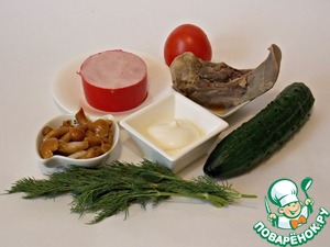 Наши ингредиенты. У меня малосольный огурчик, но, думаю, что с солёным он будет более пикантный.