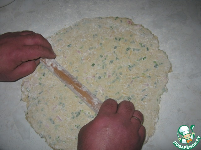 Скалкой длинной, не кривой, в 2 сантиметра толщиной.