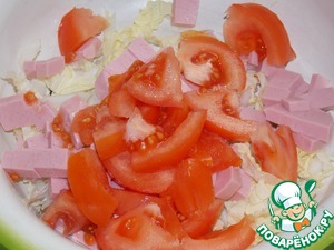 Добавить нарезанную помидорку.