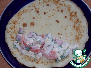 На блинчик выложить начинку, свернуть.