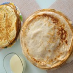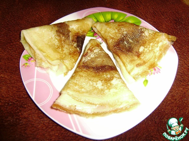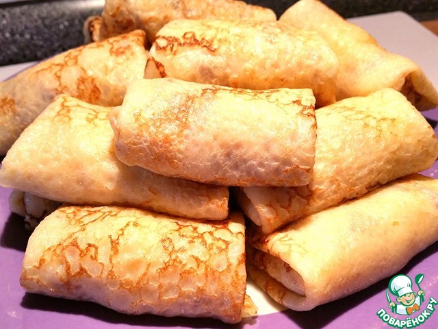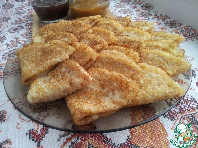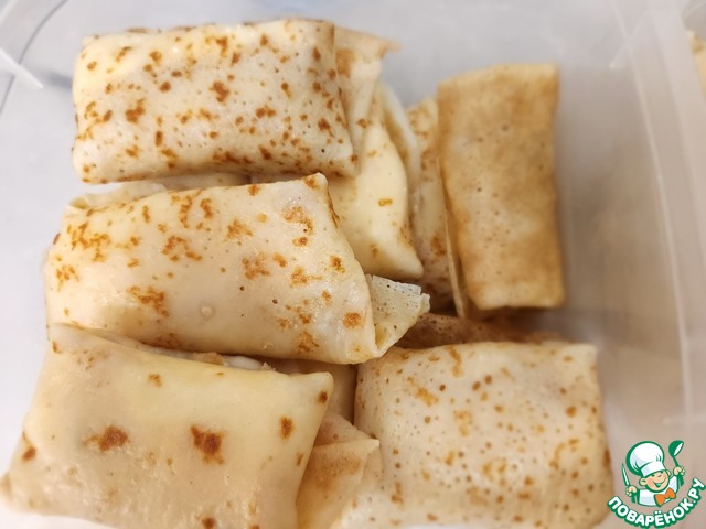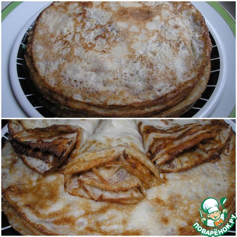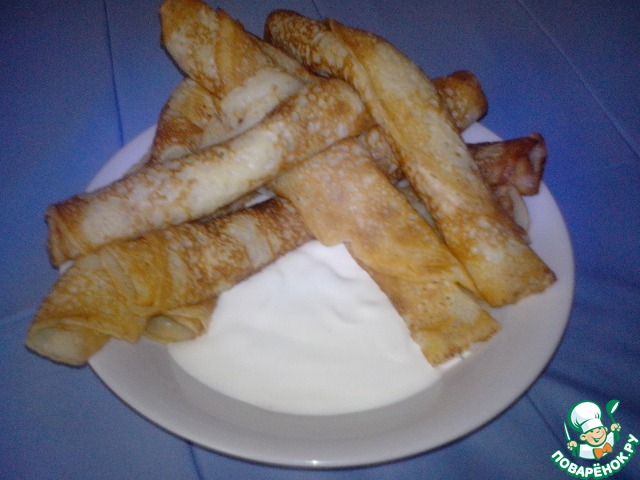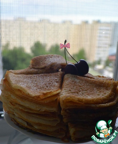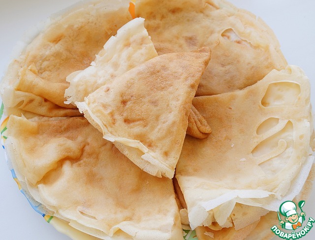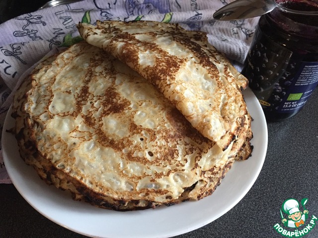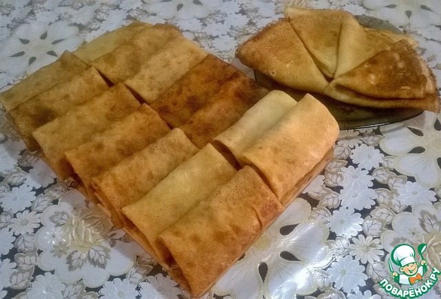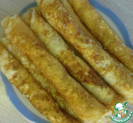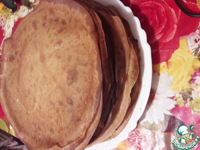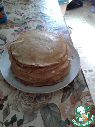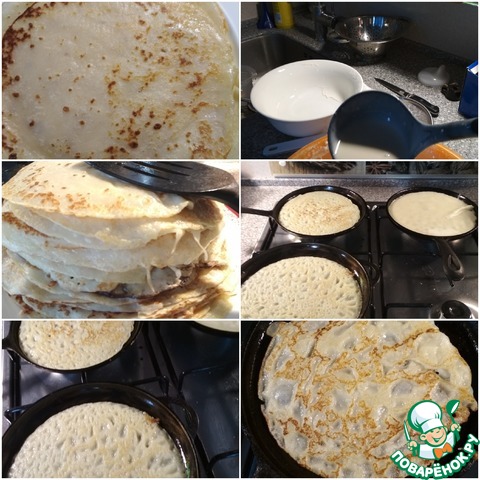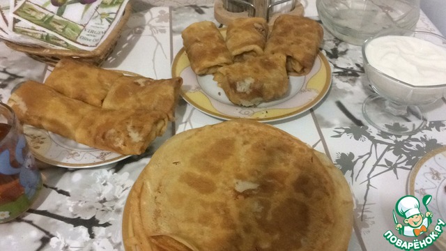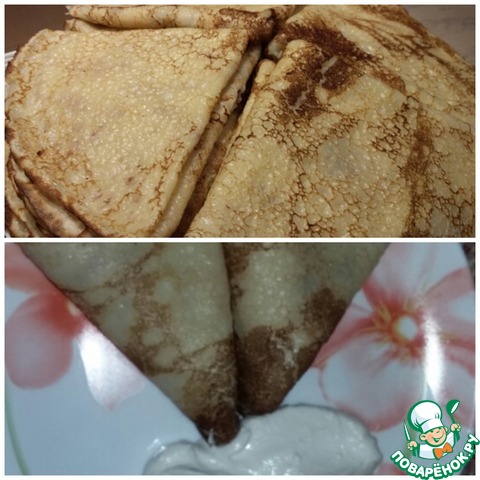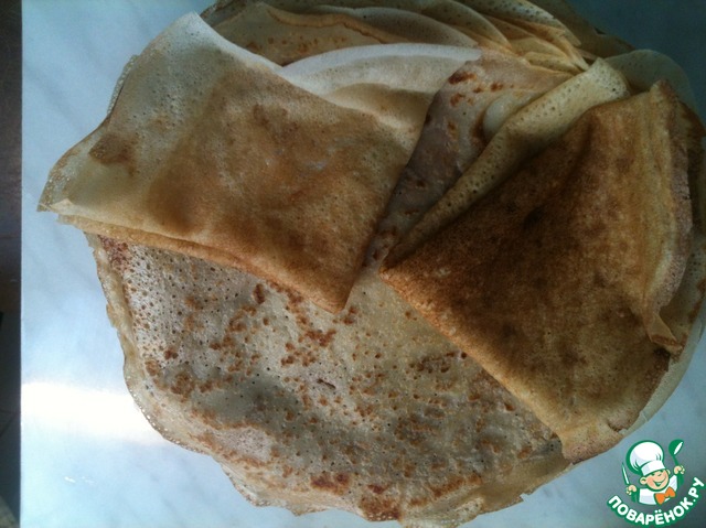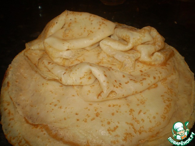 Брала продуктов вдвое меньше и исключила воду, потому что литр сыворотки нужно было использовать, а сто тыщ блинов жарить не хотелось))