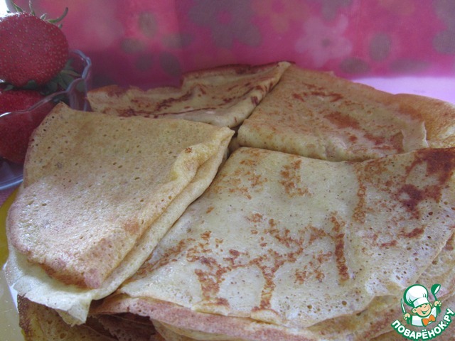 Дорогие поварята! Сегодня я хочу угостить Вас блинами по нашему, можно сказать, семейному рецепту - ему уже более полувека. Блинчики получаются очень тоненькие, ажурные, мягенькие и вкусные. Одинаково вкусны если готовить их на молоке, кефире, ряженке или простокваше. Угощайтесь.