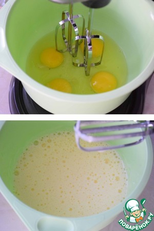В тесто выливаем взбитые яйца и хорошо перемешиваем тесто.