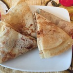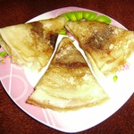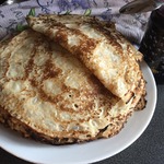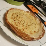 Блины получились очень тонкие, даже страшно было переворачивать, норовили порваться, но странные свойства теста позволяли залепить мелкие порывы прям на сковороде. Тесто не прилипало даже без дополнительной смазки маслом. Ну и, конечно, получилось вкусно!