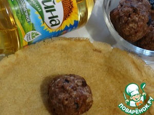 Скатать из сладкой массы шарики, размером с грецкий орех, положить на середину блина. -