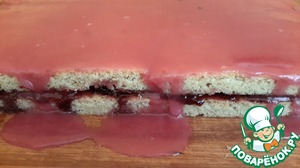 Полученную смесь выливаем сверху на остывшие коржи и разравниваем. Ставим в прохладное место, чтобы помадка застыла.