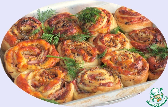 Рецепт «Слоеные рулетики с ветчиной и сыром»: