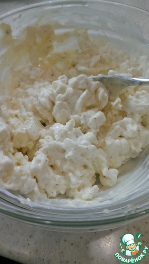 Добавляем майонез по вкусу, пропущенный через пресс чеснок и черный молотый перец. Перемешиваем.