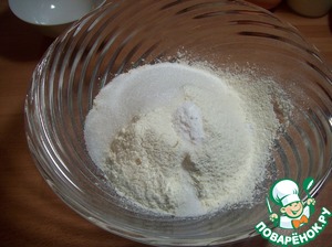 Смешать сухие ингредиенты в миске. Сделать углубление в середине.