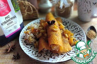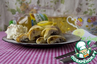 Рецепт «Блины с яичницей и шампиньонами»: