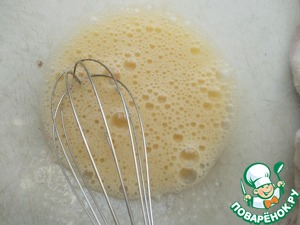 Яйцо взбить с сахаром и солью до однородности.