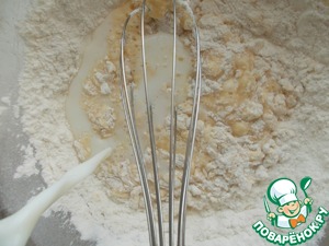 Затем всыпать муку и влить теплое молоко.