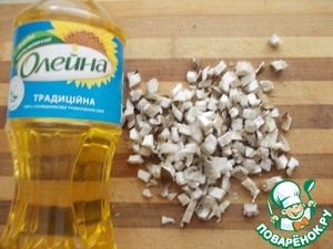Шампиньоны режем кубиком и обжариваем слегка на масле.