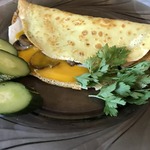 Блины с яичницей и шампиньонами