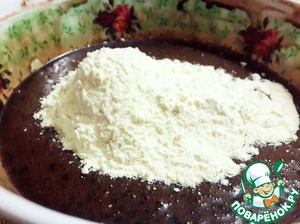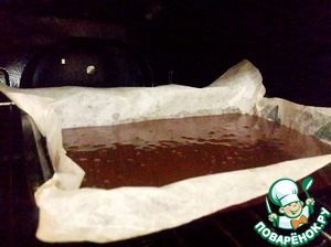 В форму, застеленную пергаментной бумагой влить смесь, и поставить в духовку на 30-40 минут.