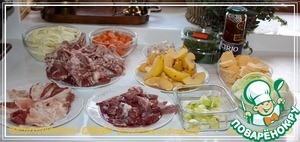 Вот всё то, что нам понадобится для приготовления дымлямы разложено перед вами, на столе. Ну, разве что перцы еще в процессе, да про специи расскажу «по ходу»….