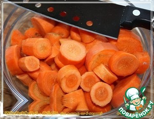 А потом морковку режем на куски. Нетонкие. Но и не очень толстые.