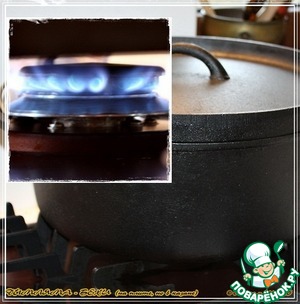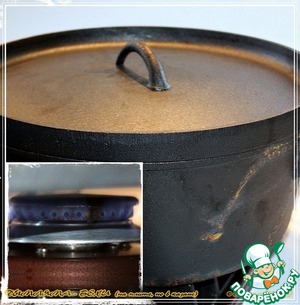 И закрыв плотнейшим образом казан (вот где пригодилась тяжеленная крышка) ставим его на сильный огонь, ненадолго.