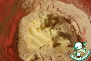 В конце добавить 50 г размягченного сливочного масла и тщательно его вмесить в тесто. Месить не менее 10-15 минут.