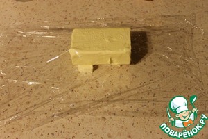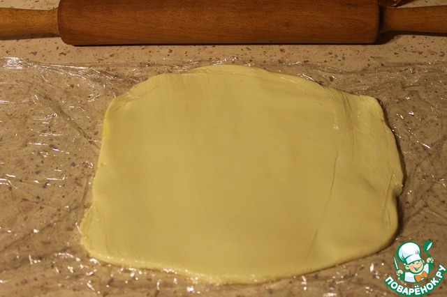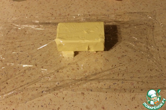 Масло раскатать в квадрат и убрать в холодильник. Достать из холодильника за 20 минут до работы с тестом.