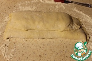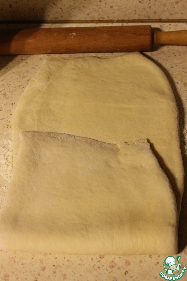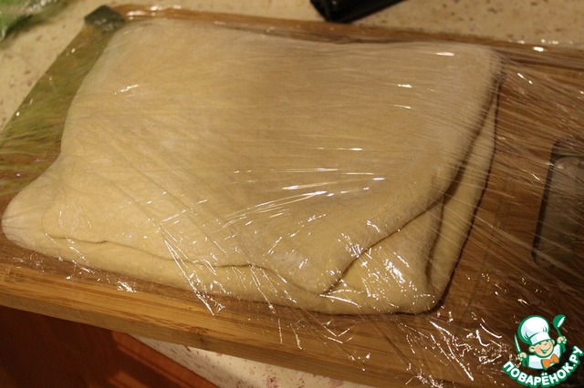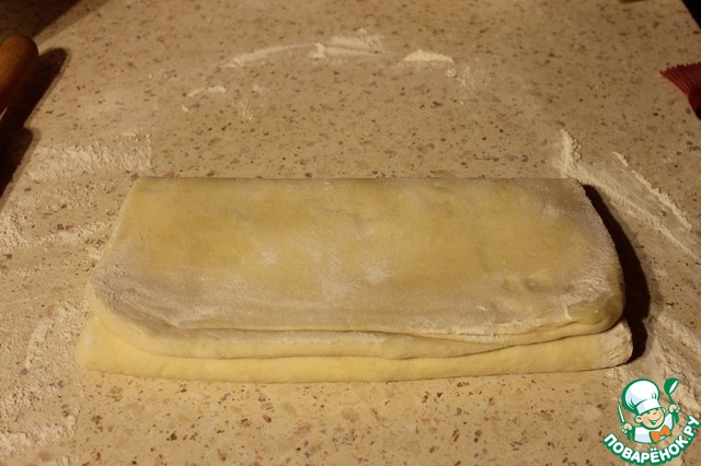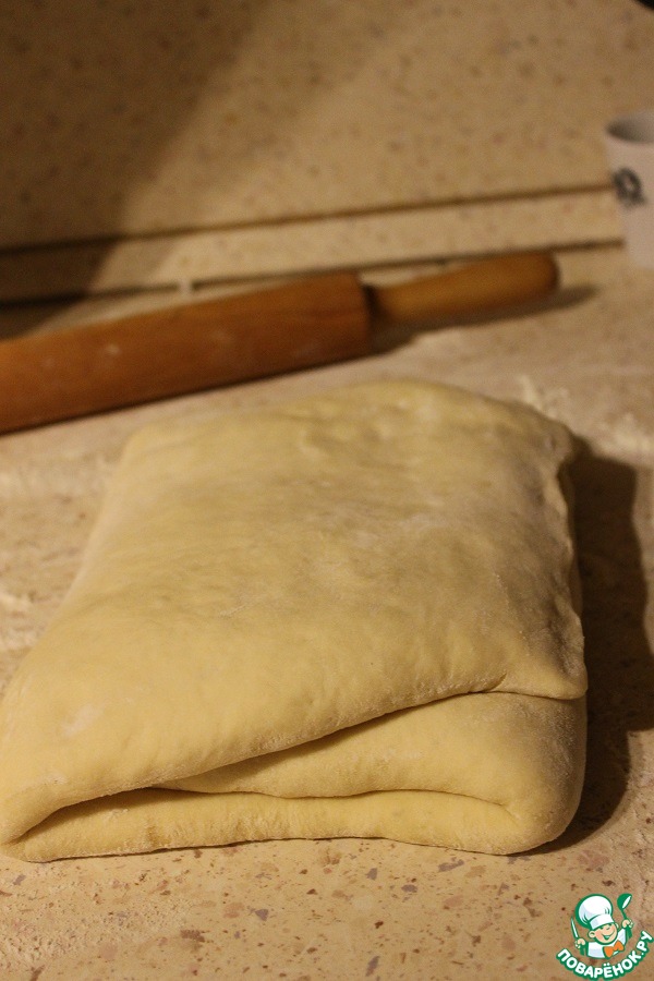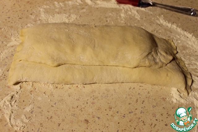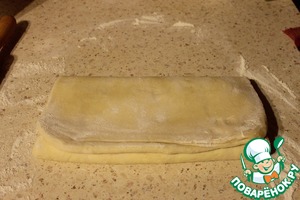И противоположный край к себе. Убираем в холодильник на 1 час. Повторяем все манипуляции еще 2 раза. Затем убираем тесто в холодильник на 3 часа, а лучше на ночь.