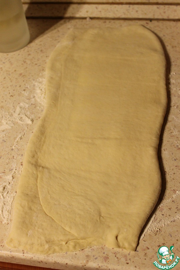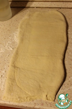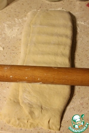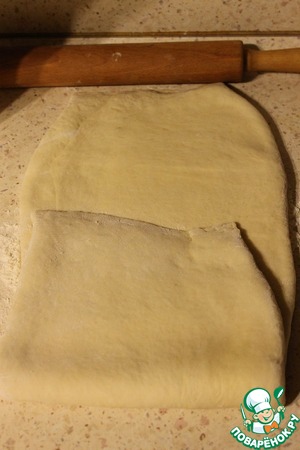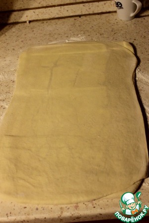 Припылить стол мукой, положить тесто той стороной к себе, где видны слои.