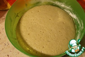Смешать все ингредиенты для опары. Накрыть полотенцем и оставить на 30 минут в теплом месте.
