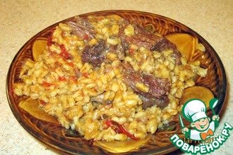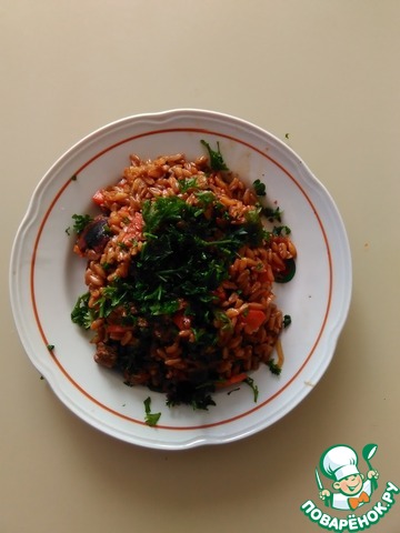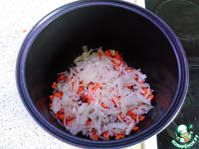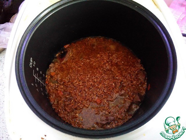 После обжарки в чашу мультиварки выкладывает крупу, солим, можно поперчить ( на любителя), заливаем 150 мл воды и устанавливаемые режим "тушение" на 40 минут