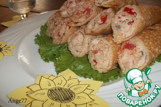 Рецепт «Блинчики с курицей, шпинатом и соусом»: