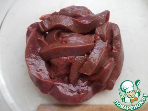 Печень порежьте вот на такие полосочки, которые поместятся в блин.