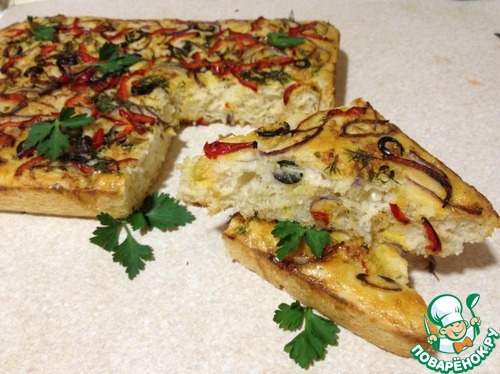 Рецепт «Фокачча с оливками, перцем и чесноком»: