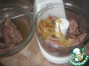 В чаше комбайна перемолола говядину (удалив протушенные помидоры)с жаренным луком