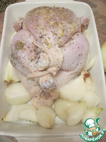 Обложили луком тушку, и закрыли в духовке нашу сплюшку
