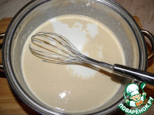 4) Далее очень осторожно понемногу вливаем остальное молоко, постоянно мешая.