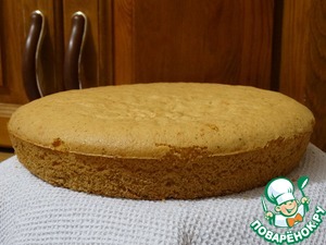 Понадобится не весь испеченный бисквит, а его пласт, для чего остывший бисквит я разрезала на слои. -
