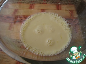 Яйца взбить. Добавить молоко комнатной температуры, сахар, соль и снова взбить. -