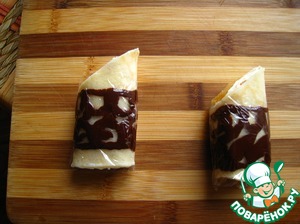 Рецепт «Блины с персиком в шоколадном кружеве»:
